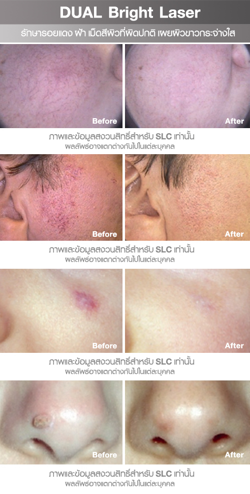 DUAL Bright Laser นวัตกรรมแสงเลเซอร์ชั้นสูง โดยมีหลักการรักษาด้วยลำแสงเลเซอร์สีเหลืองที่มีความยาวคลื่น 577 นาโนเมตร ส่งผ่านพลังงานด้วย Homogeneous beam ให้พลังงานที่มีความสม่ำเสมอเท่ากันทั่วทั้งพื้นที่หน้าตัดของลำแสงเลเซอร์ และทำงานอย่างนุ่มนวลต่อผิว ไม่เจ็บ สามารถทำได้ทุกสีผิวไม่เกิดผลข้างเคียงภายใต้ความปลอดภัยสูง ผ่านการรับรองมาตรฐานจากกลุ่มประเทศในทวีปยุโรป และองค์การอาหาร และ ยาสหรัฐอเมริกา