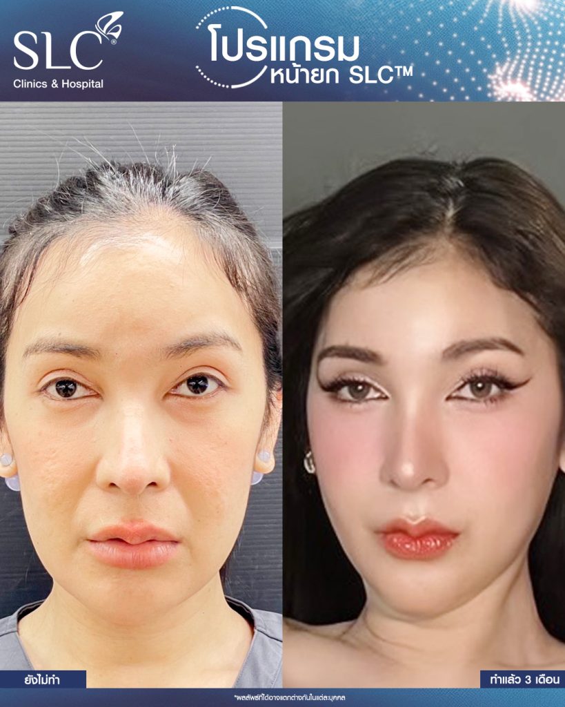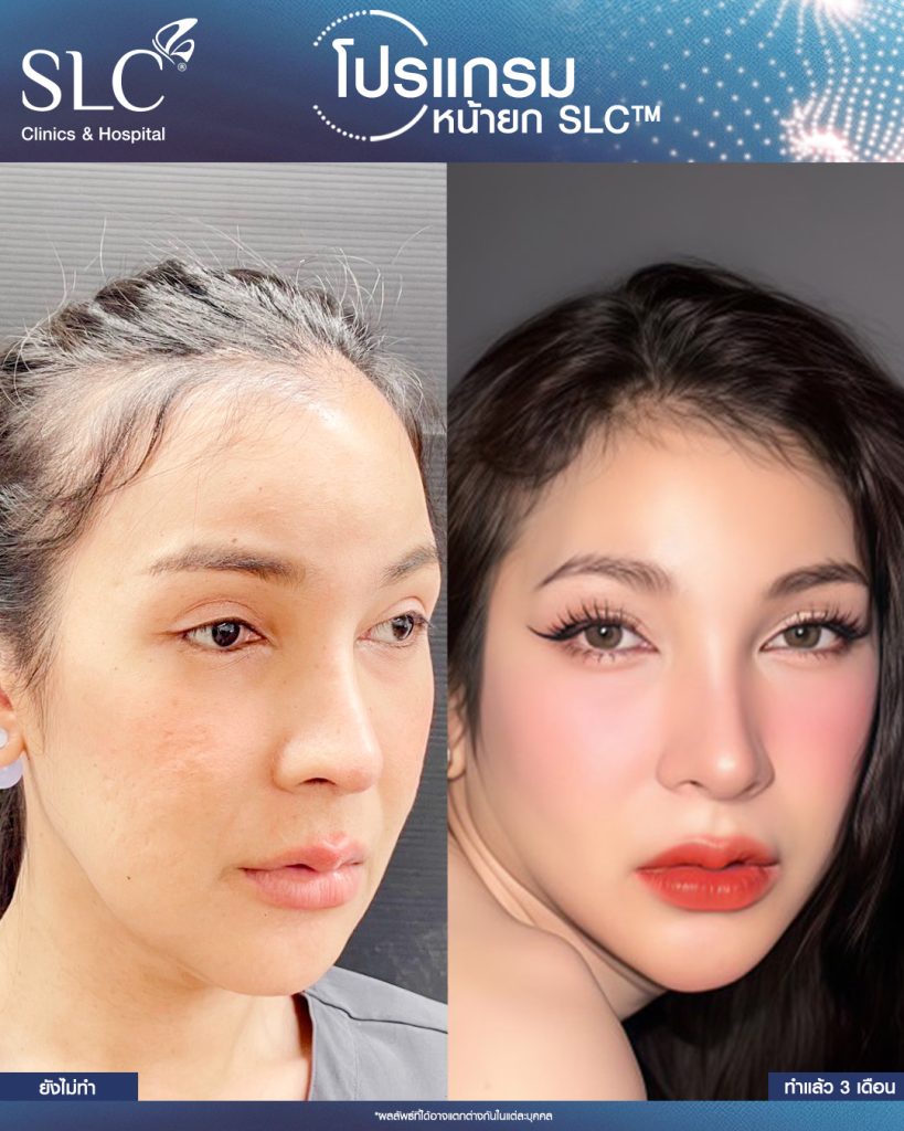 • ผลลัพธ์สองต่อ เติมเต็ม + ฟื้นฟู โปรแกรมหน้ายก SLC ไม่ใช่แค่เติมเต็มเหมือนฟิลเลอร์ทั่วไป แต่ยังช่วยฟื้นฟูโครงสร้างผิวลึกถึงระดับเซลล์