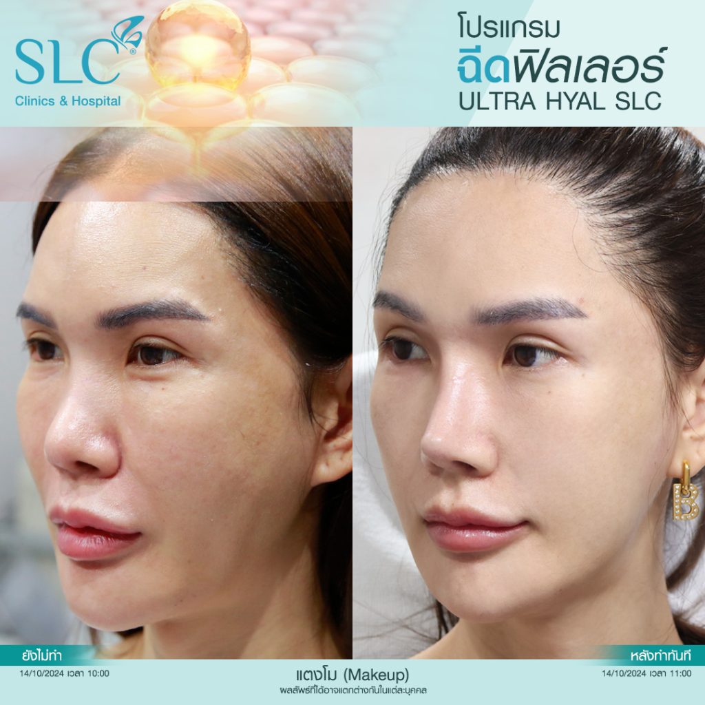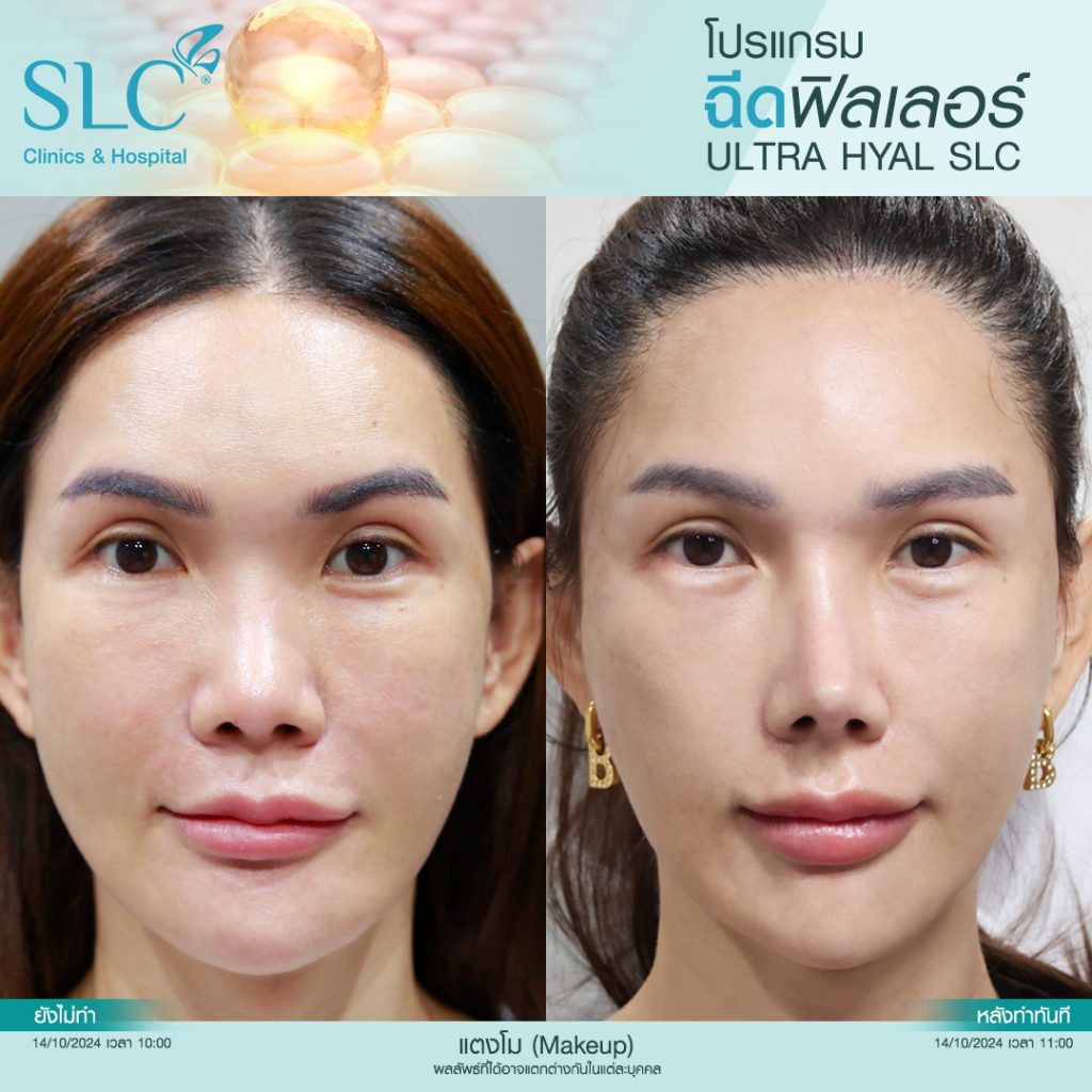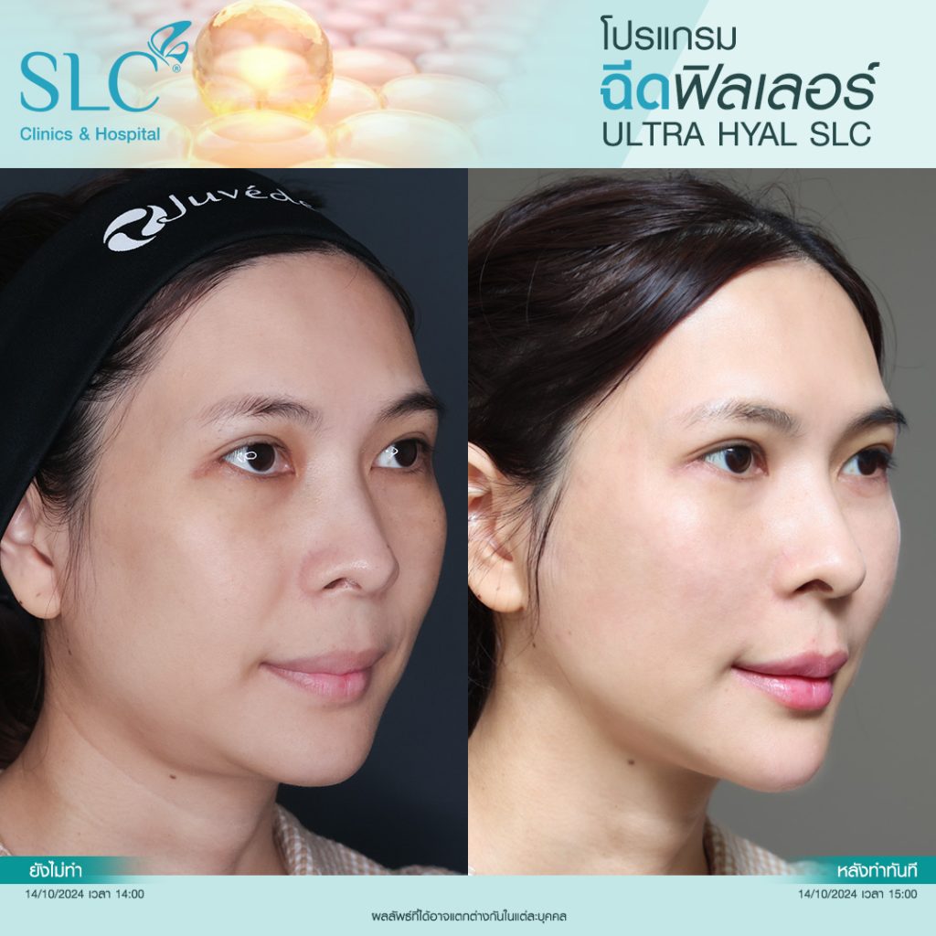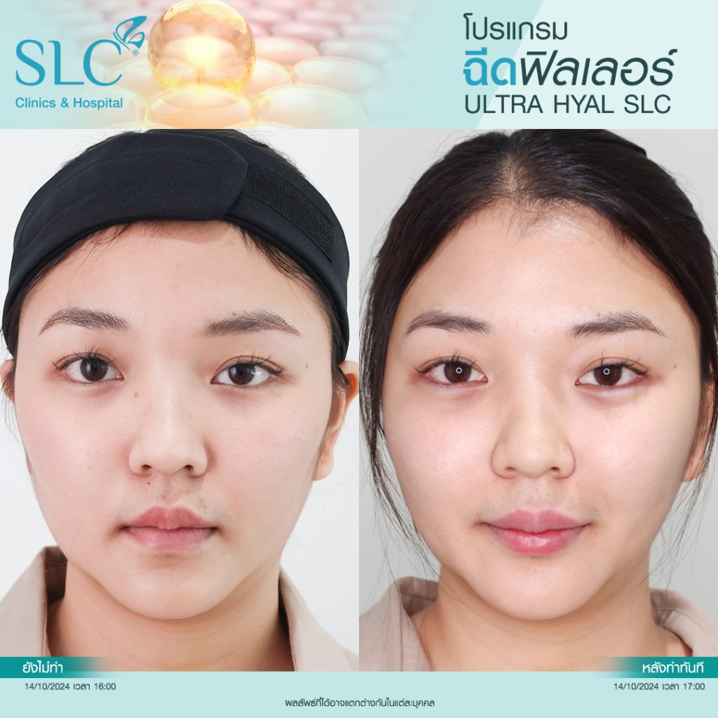 โปรแกรมฉีดฟิลเลอร์ Ultra Hyal SLC ไม่เพียงเติม HA กลับเข้าไป แต่ยังช่วยเติมเต็มผิวหน้า พยุงโครงหน้าไม่ให้เกิดความหย่อนคล้อย และยังช่วยกระตุ้นการสร้างคอลลาเจน และเพิ่มความยืดหยุ่นให้ผิวอีกด้วย ทำให้ผิวชุ่มฉ่ำแบบสุด!